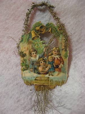 Title (ebay affiliate link): Antique Vintage Christmas Paper Scrap Die Cut Tinsel Ornament Children (K)