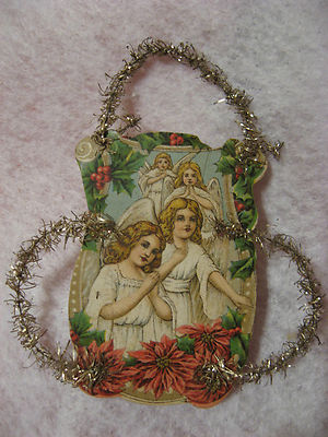Title (ebay affiliate link): Antique Vintage Christmas Paper Scrap Die Cut Tinsel Ornament Angels (U)