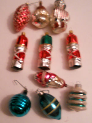10 VINTAGE GLASS CHRISTMAS ORNAMENTS