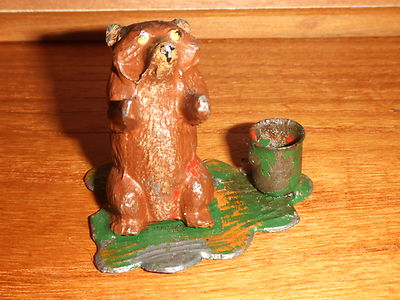 Title (ebay affiliate link): vintage Made in Germany cast lead bear candle holder, old 1-1/2" tall tiny guy