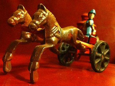 Title (ebay affiliate link): ANTIQUE HORSE DRAWN FIRE TRUCK WATER PUMP TANK CAST IRON TOY FIGURINE DECORATIVE
