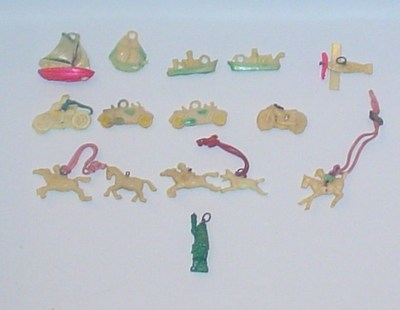 Title (ebay affiliate link): 15 Vintage Celluloid Toy Charms 1940's Statue of Liberty Cars Boats Racehorses +