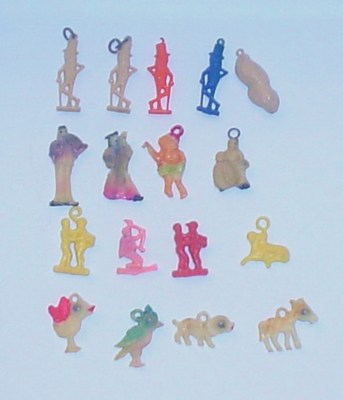 Title (ebay affiliate link): 17 Vintage Celluloid Toy Charms 1940's Mr Peanut, 4 Zodiac Signs+