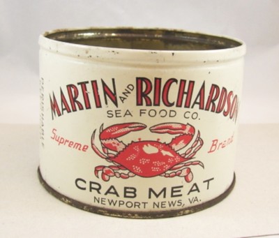 Vintage Martin and Richardson crab meat tin can Newport News Va.