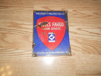 ANTIQUE ENAMEL PORCELAIN VINTAGE WELLS FARGO ALARM SERVICES OLD WEST SIGN !!