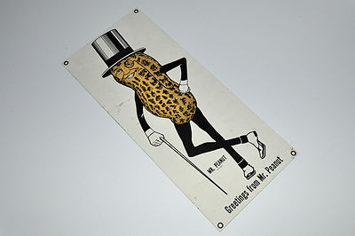 Title (ebay affiliate link): Ande Rooney 15.5"x6 3/4" Mr. Peanut Porcelain USA Made Enameled Advertising Sign