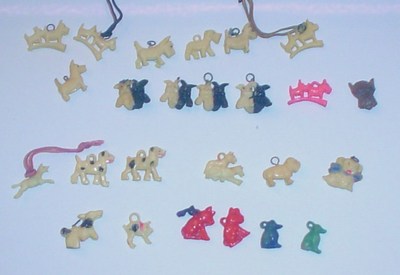 Title (ebay affiliate link): 25 Vintage Celluloid Toy Charms Dogs 1940's given away as premiums,