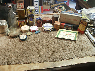 L411 Lot of Antique Vintage Advertising Tins, Cans, Beer, Auto, Medicine,Etc