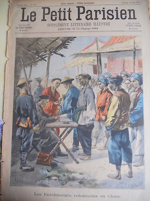 Old Print 1900 Color Cover Engraving China Revolution Boxers War Enrolements