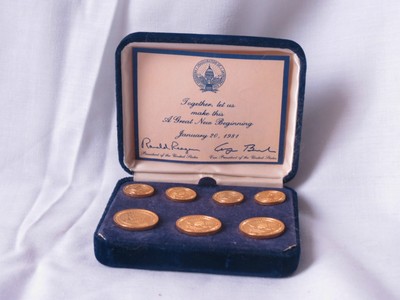 Title (ebay affiliate link): PRESIDENTIAL INAUGURATION 1981 RONALD REAGAN GEORGE H.W. BUSH BLAZER BUTTON SET