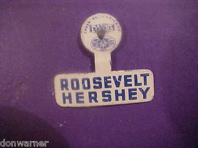 Title (ebay affiliate link): ROOSEVELT HERSHEY GOVERNOR IL COATTAIL TAB BUTTON pin 1940 FDR ILLINOIS CAMPAIGN