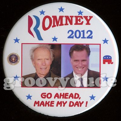 Title (ebay affiliate link): Mitt Romney President 2012 Clint Eastwood Make My Day Vote Pin Button Pinback