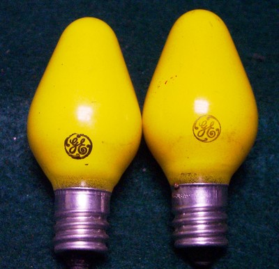 Title (ebay affiliate link): 2 VINTAGE GE CHRISTMAS LIGHT BULBS - C7 - LEMON YELLOW - CERAMIC COLOR -