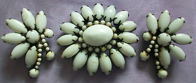 Title (ebay affiliate link): BEAUTIFUL VINTAGE MILK GLASS DEMI PARURE BROOCH AND EARRINGS