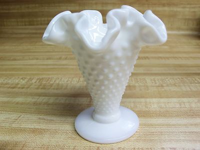 VINTAGE FENTON WHITE MILK GLASS RUFFLED EDGE HOBNAIL VASE