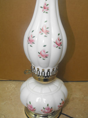 vintage milk glass hurricane electric bedroom dresser lamp painted flowers