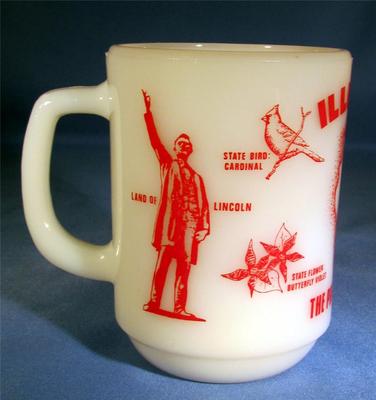 Vintage Antique Anchor Hocking Fire King Milk Glass Illinois Mug State Souvenir