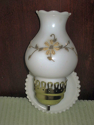 Title (ebay affiliate link): Vintage Milk Glass Hurricane Beaded Hand Painted WalL Fixture Sconce Lamp