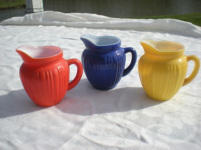 Hazel Atlas "GAY RAINBOW" milk and cream pitchers in 3 colors !