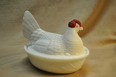 Title (ebay affiliate link): Vintage Westmoreland Milk Glass 4.5" Hen on Nest Covered Dish Red Trim - Marked