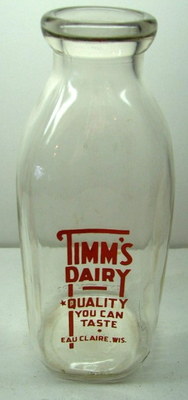 Title (ebay affiliate link): Antique/Vintage Adv 1 Qt. Glass Milk Bottle/Timms Dairy/Eau Claire WI/ca 1950's