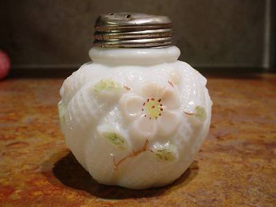 Title (ebay affiliate link): Cosmos Short Apple Blossom Salt Shaker Milk White Glass SCARCE