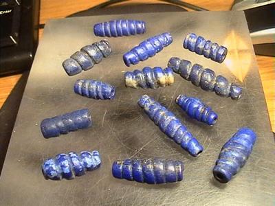 Title (ebay affiliate link): 13 Ancient Egyptian Lapis Lazuli Barrel Beads 500-100 bc 16mm-32mm in length