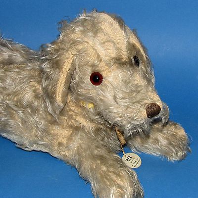 Title (ebay affiliate link): Cute antique grey mohair dog Farnell pyjama case - Rex with label 1930s.