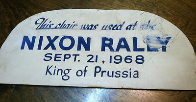 Title (ebay affiliate link): NIXON chair back from NIXON RALLY Sept. 21, 1968 Rally in King of Prussia, PA *