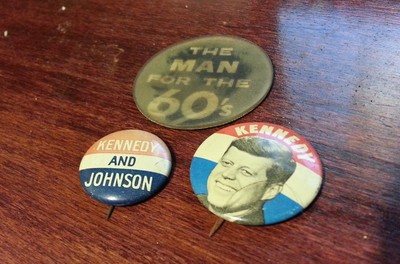 John F. Kennedy Campaign buttons, one changes when you move it.