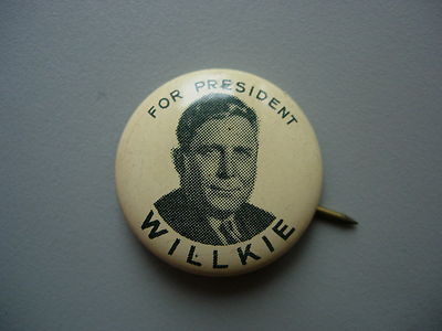 old presidential campaign pin WILLKIE signed GREEN DUCK Chicago UNION LABEL