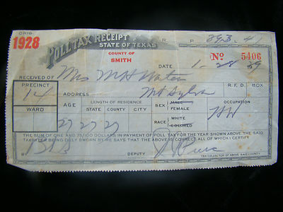 Poll Tax Receipt from Texas, 1928