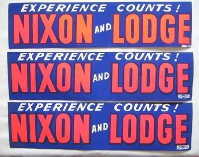 Title (ebay affiliate link): 3 VINTAGE RICHARD NIXON LODGE CAMPAIGN BUMPER STICKER DECAL PRESIDENT POLITICAL
