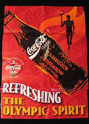 Title (ebay affiliate link): Rare 1996 Coca-Cola Coke Olympics Poster ~ Red w/Olympic Runner 24" x 33"