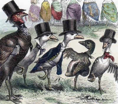 Title (ebay affiliate link): 1842 GRANDVILLE - LORD AND LADY BIRD WITH FAMILY - Hand Colored Engraving