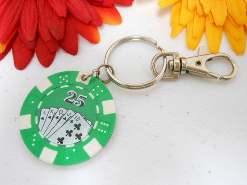 Title (ebay affiliate link): VINTAGE SILVER TONE GREEN WHITE 23 POKER CHIP CASINO KEYCHAIN B9235