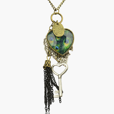 Title (ebay affiliate link): Peacock Feather Design Tassel Love Heart Key VTG Cooper Necklace Pendant TB679K
