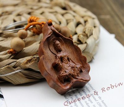 Title (ebay affiliate link): Chinese wood carving Buddha Leaf Guanyin amulet netsuke statue key chain W96