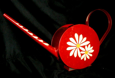 TOLE WARE ORIGINAL HAND PAINTED Daisies on Red w/ Label