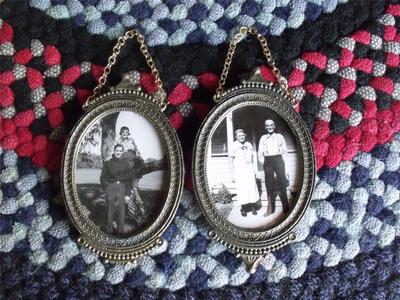 Title (ebay affiliate link): 2 Lovely Vintage Hanging Metal Picture Frames 1936 Black & White Photos Included
