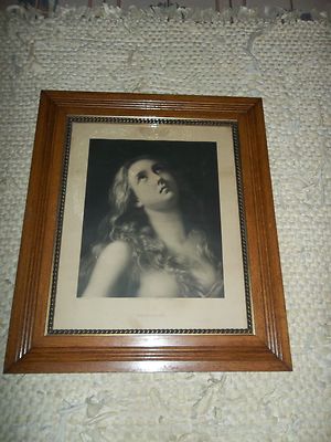 Antique Large Beaded Oak Wood Frame