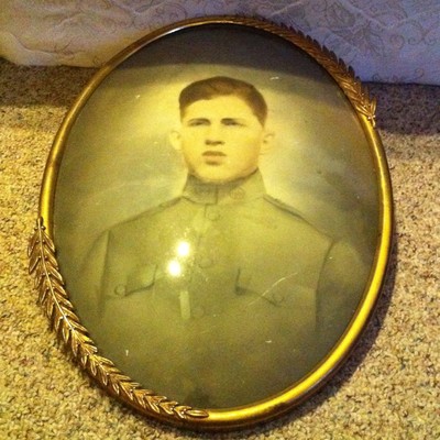 Title (ebay affiliate link): Antique Metal or Brass Oval Convex Bubble Glass Picture Frame with RARE Soldier