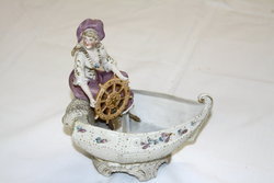 Title (ebay affiliate link): ANTIQUE VICTORIAN BISQUE BOWL FIGURAL LADY AT SEA IN BOAT NAUTICAL SHIP'S WHEEL