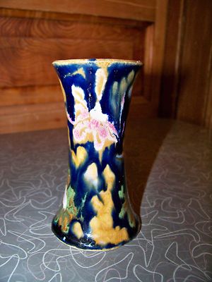 Antique Gaudy Art Pottery Hat Pin Holder or Miniature Vase