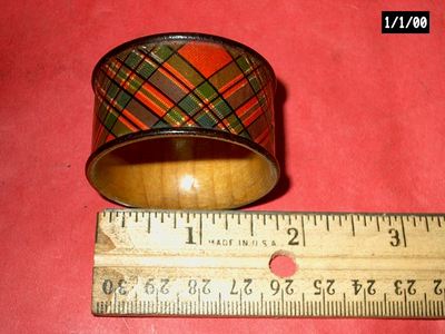 Title (ebay affiliate link): ANTIQUE WOOD MAUCHLINE WARE TARTAN WARE CALEDONIA PLAID NAPKIN RING-1" X 2"