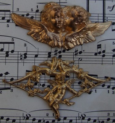 Title (ebay affiliate link): ANTIQUE FRENCH VINTAGE ORMOLU PLATED METAL ANGEL BOOK OR FURNITURE MOUNTS