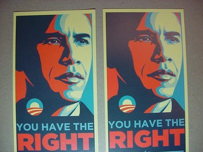 Title (ebay affiliate link): Pair Shepard Fairey Obama 2008 Right To Vote Poll Cards Lot Print Change Poster