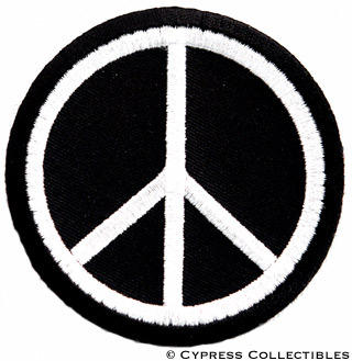Title (ebay affiliate link): PEACE SIGN iron-on patch ANTI-WAR PROTEST SYMBOL black embroidered applique