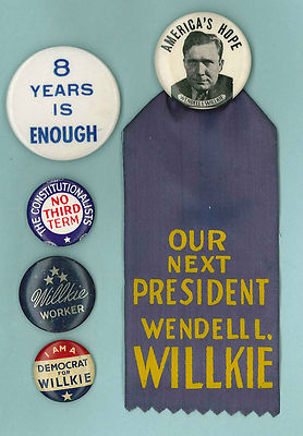 Title (ebay affiliate link): Willkie worker Ribbon 8 years No third term anti Roosevelt political Campaign