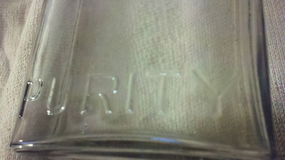 Tall Clear Glass Apothecary Bottle /Jar Embossed 3xvi Purity Quality Blue Ribbon